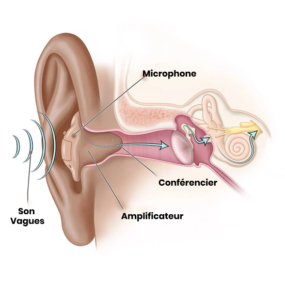 Le fonctionnement de l’audition est produit par la coordination des différents éléments qui composent l’oreille.